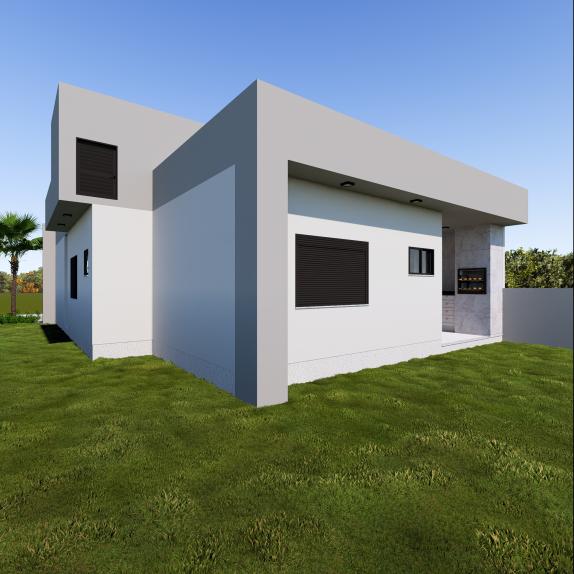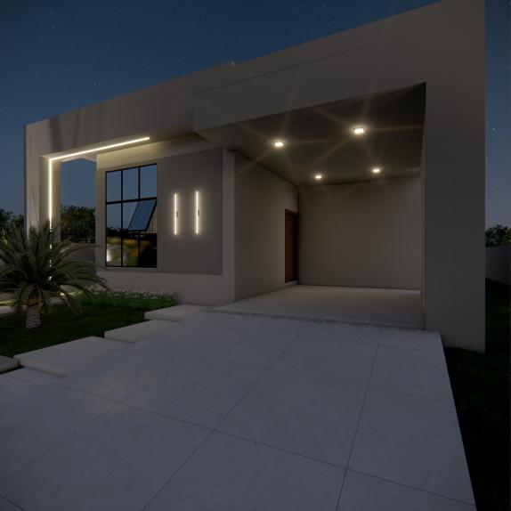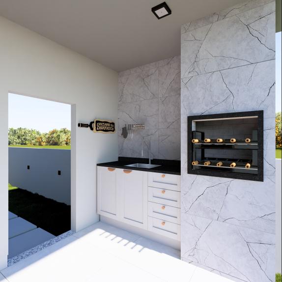02 quartos 01 Banheiro socialSala de estarCozinha e sala de jantar integradasLavanderiaVaranda Gourmet com lavabo